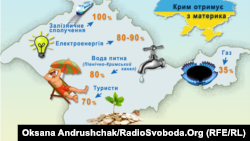 Понад 80% питної води та електроенергії Крим отримує з України. А витрати автономії більше ніж на половину забезпечуються завдяки дотаціям із українського держбюджету. Якщо бюджетні субсидії Росія може без особливих проблем взяти на себе, то оперативно забезпечити альтернативне водо- та електропостачання півострова Москва не спроможна.