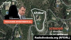 Родина Гладковського також володіє компаніями, що мають елітну нерухомість на півдні Іспанії. Так, виявилось, що на фірму його дружини Toulousse Investments SL оформлена вілла на 1729 квадратних метри, розташована в дуже престижному районі Ла Загалета.