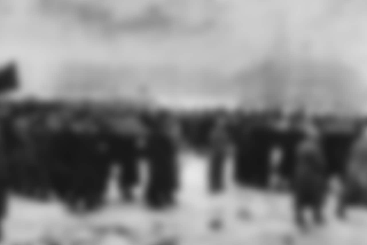 Троє солдатів на чатах на дорозі до Смольного, де був штаб Жовтневої революції. 26 жовтня були заарештовані члени Тимчасового уряду, які не встигли втекти. Вулиці переходять під контроль більшовиків.