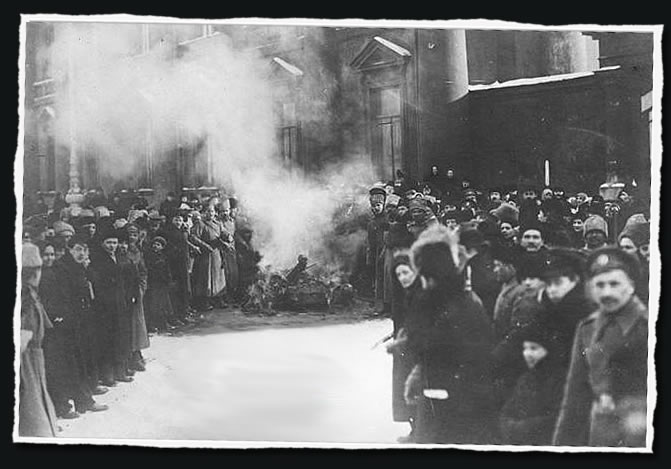 Розкішне життя вищих верств російського суспільства давно викликало обурення в нижчих класів, але під час війни воно кристалізується у гнівних промовах на вулицях і фабриках. Особливу ненависть у населення викликає фігура імператриці Олександри Федорівни, яку вважають німецькою шпигункою на троні.