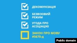 Законопроект гарантує кожному право на отримання інформації та послуг українською мовою в усіх публічних сферах, передбачає дієву систему контролю і санкції за порушення, скасовує одіозний закон Ківалова-Колесніченка. Водночас проект не спрямований проти жодних мов чи національних меншин. Це системний якісний документ, що базується на найкращих взірцях європейського мовного законодавства і відповідає викликам часу.