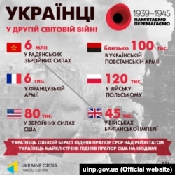 - Крім Червоної армії, вихідці з України воювали в арміях Польщі (120 тисяч), США (80 тисяч), Канади (45 тисяч), Франції (5 тисяч).