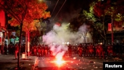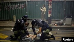 Десятки протестувальників були затримані, за повідомленнями журналістів з місця подій, в той час як поліція заявила, що шестеро поліцейських були поранені в результаті зіткнень.