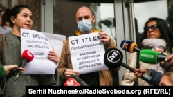 Журналісти і громадські активісти провели 6 жовтня біля будівлі державного «Укрексімбанку» провели акцію протесту через дії керівництва фінансової установи щодо журналістів програми «Схеми» (спільного проєкту Радіо Свобода та телеканалу «UA: Перший») Кирила Овсяного та Олександра Мазура.