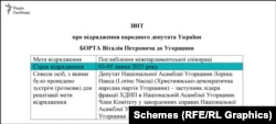 Віталій Борт, 51-річний народний депутат, обраний від нині забороненої «ОПЗЖ», у квітні й у липні 2023 року виїжджав за кордон у триденні службові відрядження за погодженням голови Верховної Ради Руслана Стефанчука, але обидва рази не повертався вчасно, а залишався за межами України ще на місяць. Про це свідчать дані перетину кордону, отримані журналістами проєкту «Схеми» (Радіо Свобода) від джерел із доступом до таких даних.
