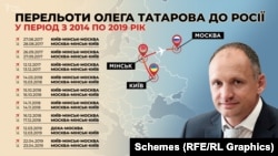 Заступник керівника Офісу президента Олег Татаров щонайменше 9 разів літав у Москву після окупації Криму та вторгнення Росії на Донбас. Про це свідчать дані авіаперельотів Олега Татарова, які є в розпорядженні проєкту «Схеми» (Радіо Свобода). За даними журналістів, Татаров, який у той період займався адвокатською діяльністю, тричі був у РФ в 2017-му, чотири рази в 2018-му, та двічі – в 2019 році. Востаннє Татаров літав до Росії наступного дня після перемоги Зеленського на виборах президента 21 квітня 2019 року. Прохання прокоментувати свої поїздки до столиці країни-агресорки, надіслане «Схемами» до Офісу президента, Олег Татаров на час публікації матеріалу залишив без відповіді.
