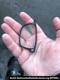 Фотокореспонденту Радіо Свобода Сергієві Нужненку силовики пошкодили камеру та розбили окуляри.