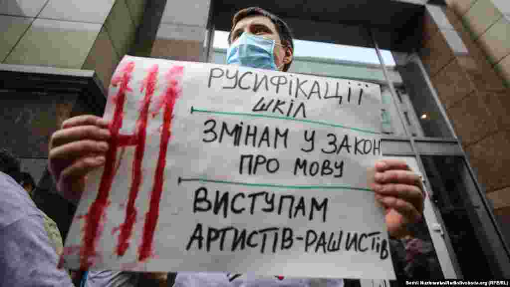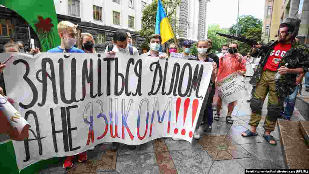 17 червня під стінами комітетів Верховної Ради відбулася акція «Зупинимо наступ на український простір». Саме в цей час парламентський Комітет з питань гуманітарної та інформаційної політики на засіданні мав розглядати законопроєкт депутата з фракції «Слуга народу» Максима Бужанського щодо мови навчання нацменшин.