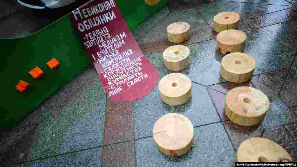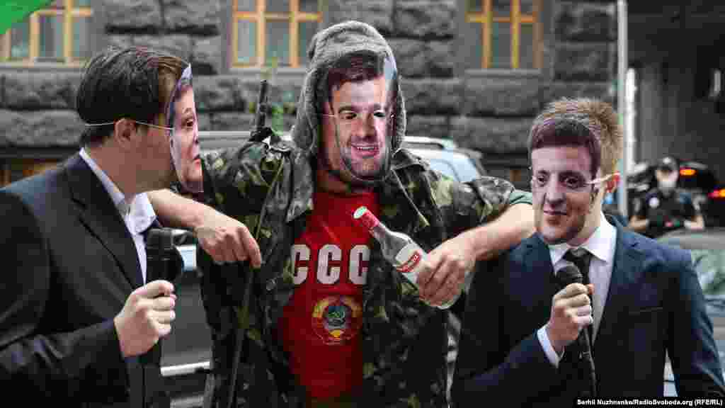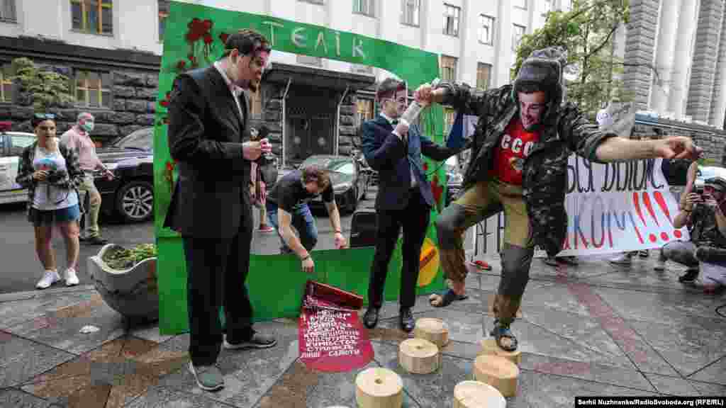 Учасники акції показали театральне дійство під назвою «Урядовий квартал» за участю «Януковича», «Зеленського» і «Пореченкова».​