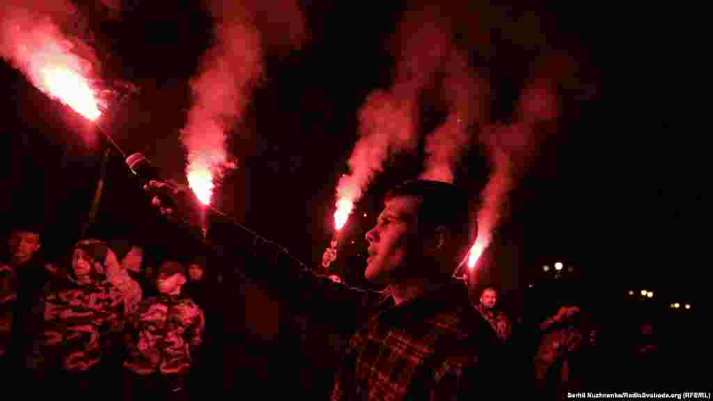 У центрі столиці України увечері 1 жовтня відбулися одразу дві вуличні акції, на яких присутні висловлювалися проти так званої «формули Штайнмаєра» й вимагали не продовжувати «капітуляцію». Спочатку праворадикальні і націоналістичні сили зібралися під стінами Офісу президента, де запалили фальшфаєри та тримали в руках великий транспарант із написом «Ні капітуляції!»