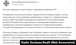 Радио Донбас.Реалии уже рассказывало о том, что Россия собирается организовать голосование на выборах в Думу для жителей ОРДЛО. Как минимум, две российские партии собираются участвовать в выборах на неподконтрольной части Донбасса. Одна из них – прокремлевская «Единая Россия», специально для этого подписала договор о сотрудничестве Союзом добровольцев Донбасса, который и возглавляет бывший «глава правительства ДНР» Александр Бородай.