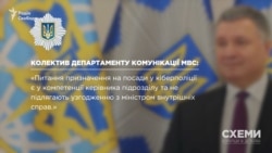 «Схеми» також поцікавилися в міністра Арсена Авакова про обставини підвищення чоловіка Ірини Венедіктової в структурі Нацполіції.