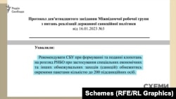Але через джерела в одному з правоохоронних органів, який теж представлений в цій робочій групі, «Схеми» дістали протокол засідання, який підтверджує обмеження до 200 підсанкційних осіб.