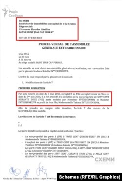 Журналісти «Схем» та Scanner Project отримали документи, відповідно до яких Володимир Євтушенков разом із членами своєї родини – Тетяною і Наталією Євтушенко – є власниками французької компанії SCI Petr.
